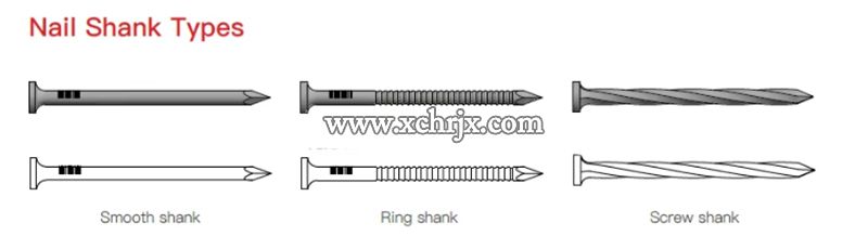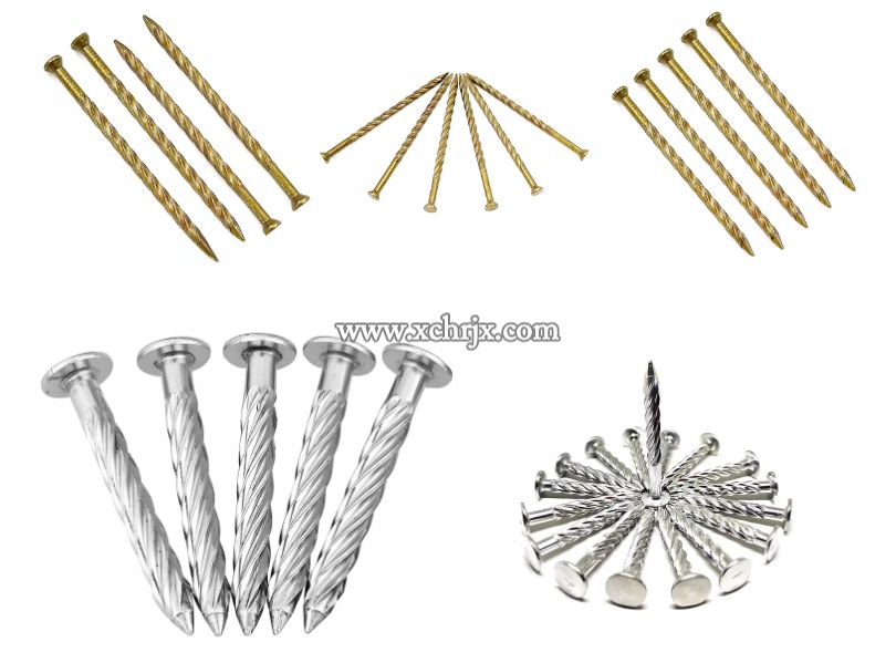 Construction nails: Ring shank nails (high pullout for wood), screw shank nails (anti-loose), spiral shank nails (for concrete/masonry).